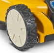 Колеса на шарикоподшипниках обеспечивают плавность хода. Резиновый протектор - для лучшего сцепления с поверхностью и защиты газона.