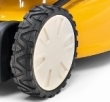 Колеса на шарикоподшипниках обеспечивают плавность хода. Резиновый протектор - для лучшего сцепления с поверхностью и защиты газона.